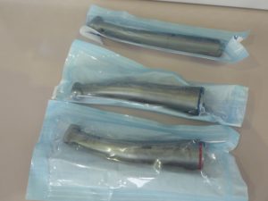 院内感染対策 治療に使うハンドピース(歯を削る機械の先の部分)は、使用ごとに消毒、個包装、滅菌して、殺菌UVランプのあるシールド内に保管しています。使用直前に滅菌バックから取り出し、感染予防に努めています。